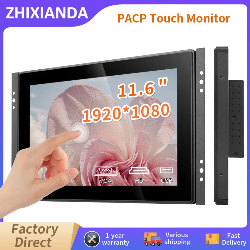 Plochý oprávněný kapacitní dotek obrazovka monitor 11.6 palec 1920*1080 otevřený formulovat průmyslový vodotěsný displej s AV vga HDMI USB