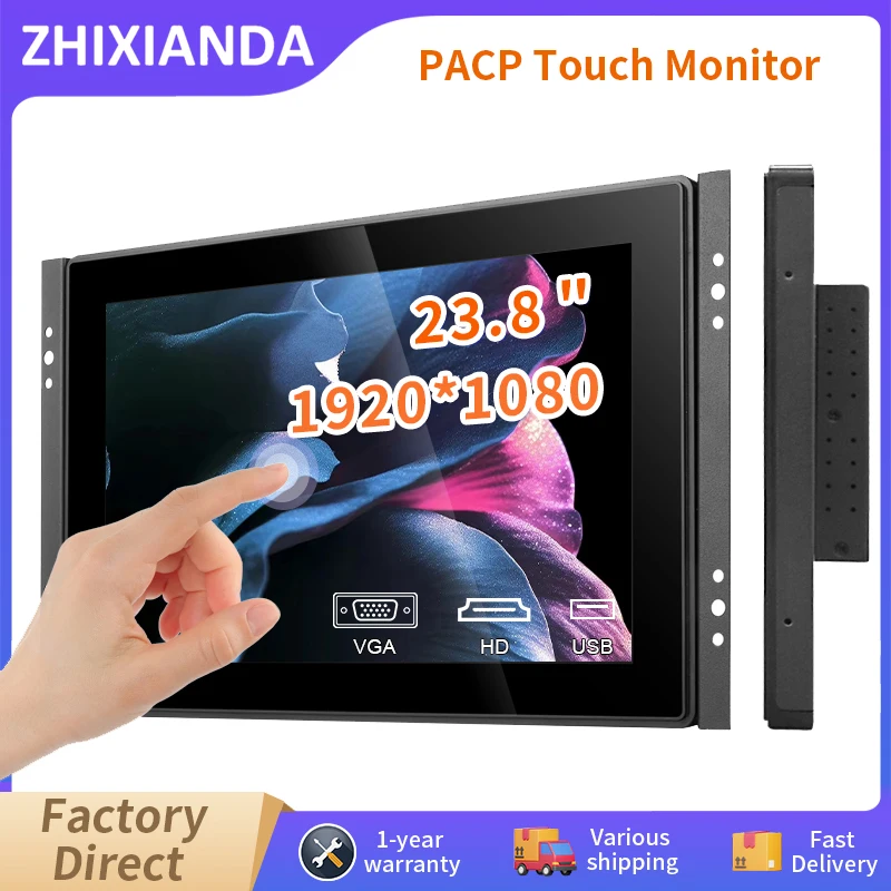 23.8 palec 1920*1080 PCAP plochý čistý 10 bodů vodotěsný kapacitní dotek obrazovka monitor s vga HDMI USB levý bok lodi
