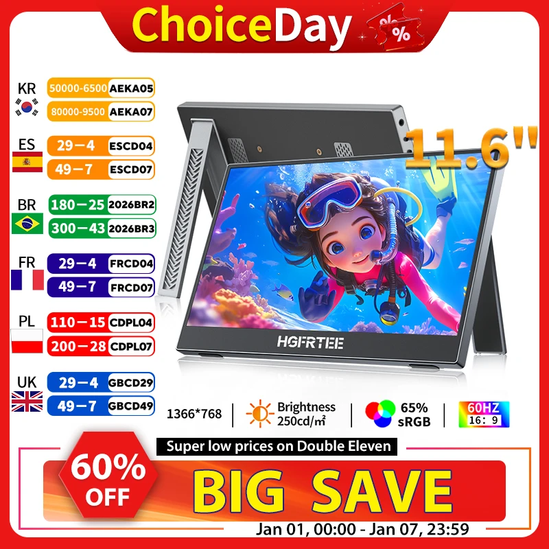 HGFRTEE 11.6 palec přenosné monitor 60hz 1366P s HDMI USB-C herní obrazovka prodloužena displej pro PC notebook maca spínač xbox PS4/5
