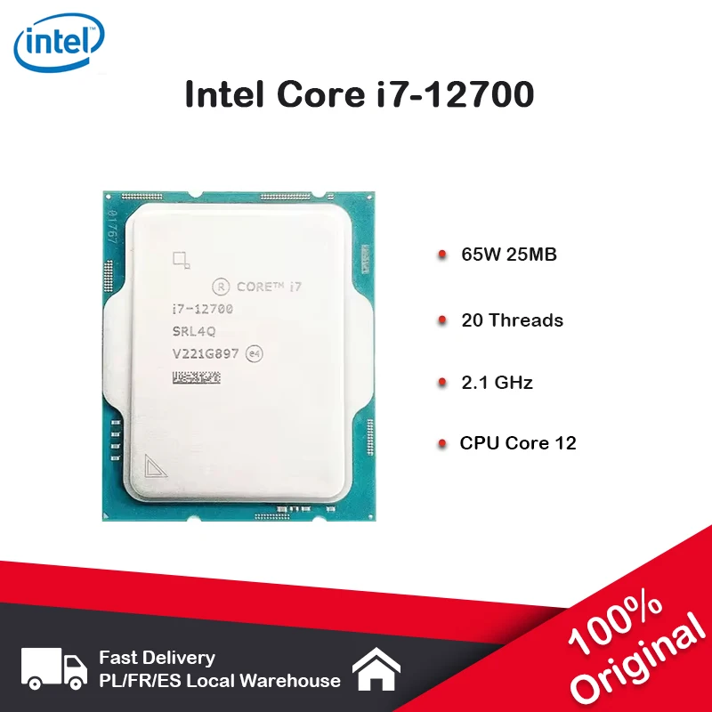 Intel jádra I7-12700 12core 20thread 2.1ghz 65W 25MB vyrovnávací 10nm olše jezero DDR4-3200/DDR5-4800 mhz SRK3S LGA1700 UHD grafika 770