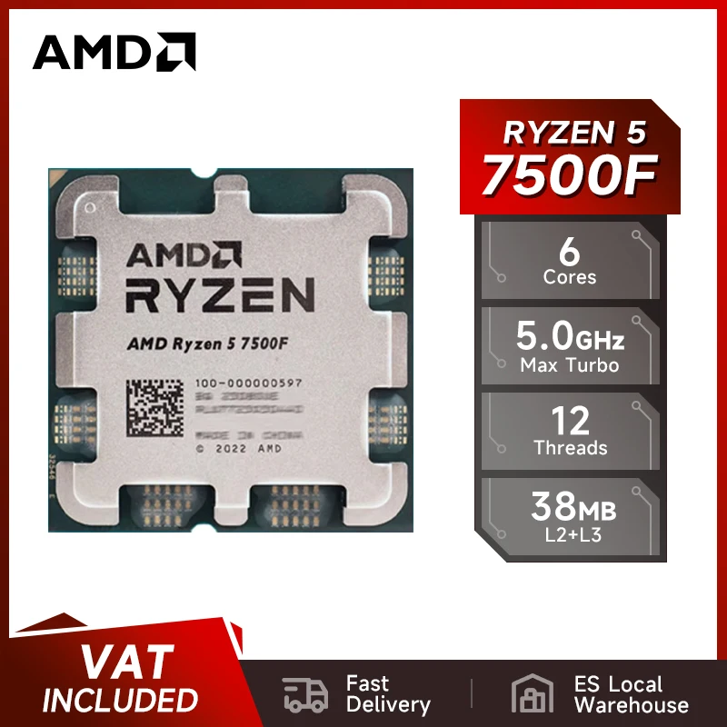 AMD ryzen 5barvy 7500F 6-core 12-thread 3.7ghz DDR5 B650 procesor L3=32M nástrčkový AM5 5NM 65W R5 7500F nový ale aniž chladič