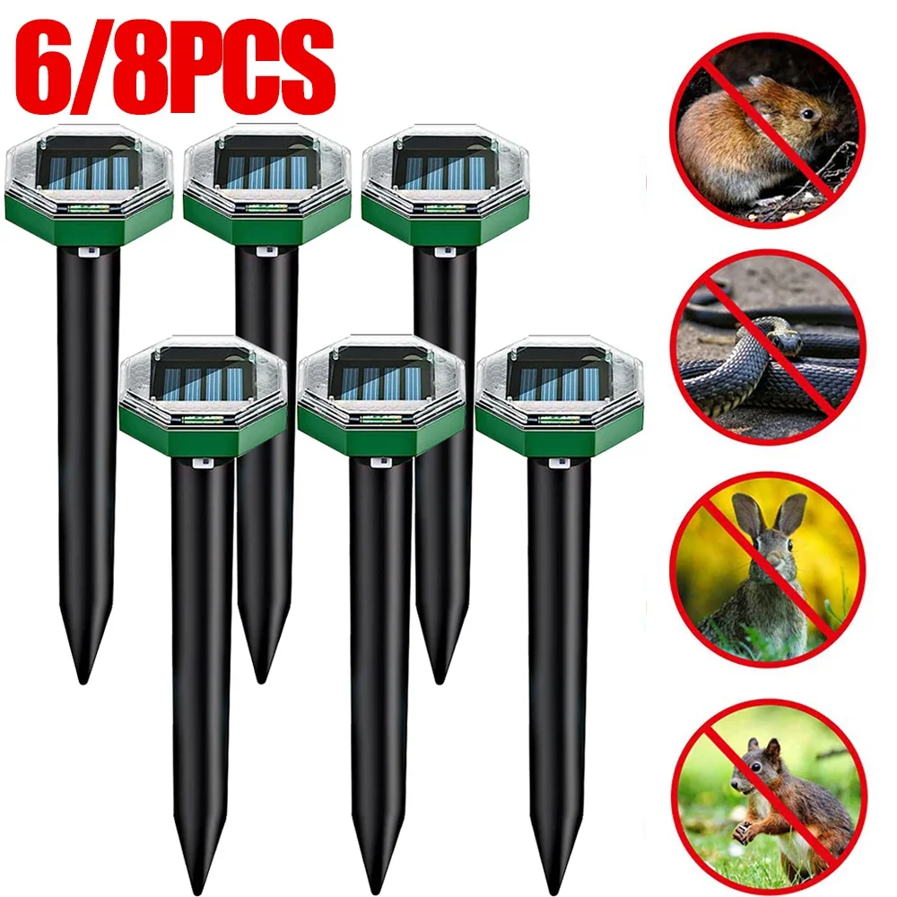 6/8pcs solární ultrazvuková elektronický myš odpuzovač hadi odpuzovač hmyz odpuzovač vysoký energie vibrace postaven baterie slunce nabíjení