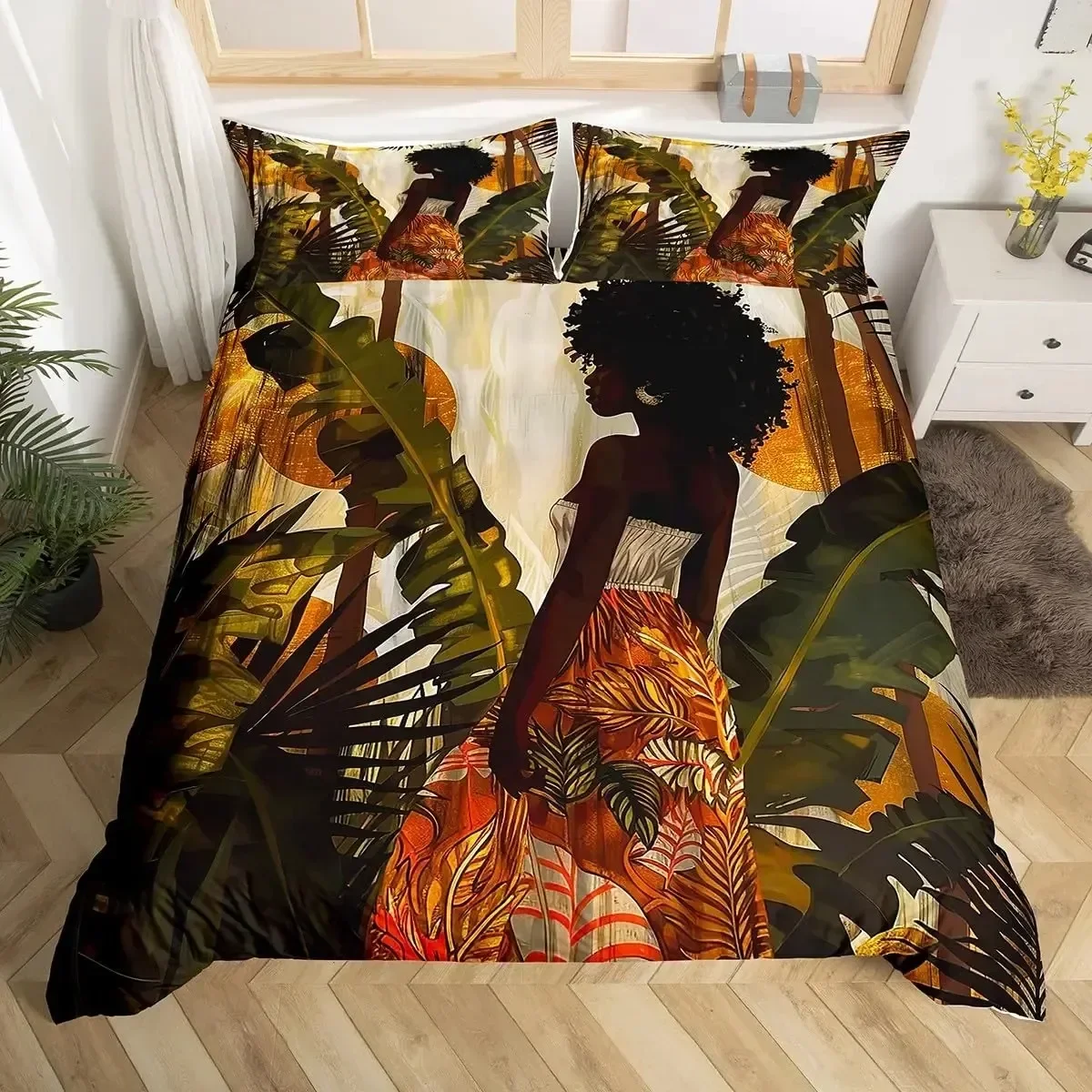 Černá žena prošívaná deka zakrýt etnický afro africký comforter starobylý exotický ložní prádlo sada tribal s pillowcases dusit se zakrýt