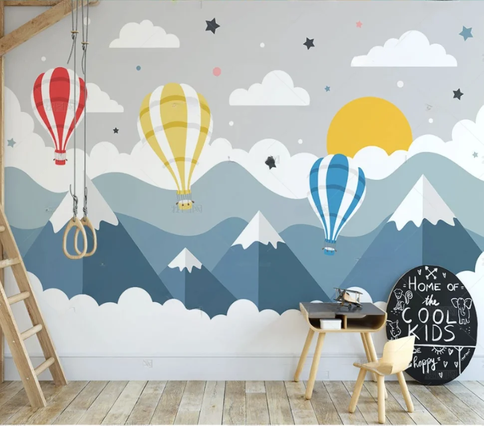 Ruka tažené geometrické hora temeno kreslený horké vzduch balón tapeta dekorace pro kids' pokoj dětský pokoj pokoj 3d tapeta