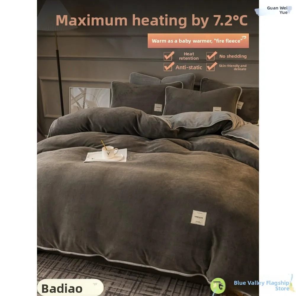 Thiened zima mléko samet four-piece ložní prádlo sada fce teplý korál samet coverlet flanel prošívaná deka zakrýt ložní prádlo accories