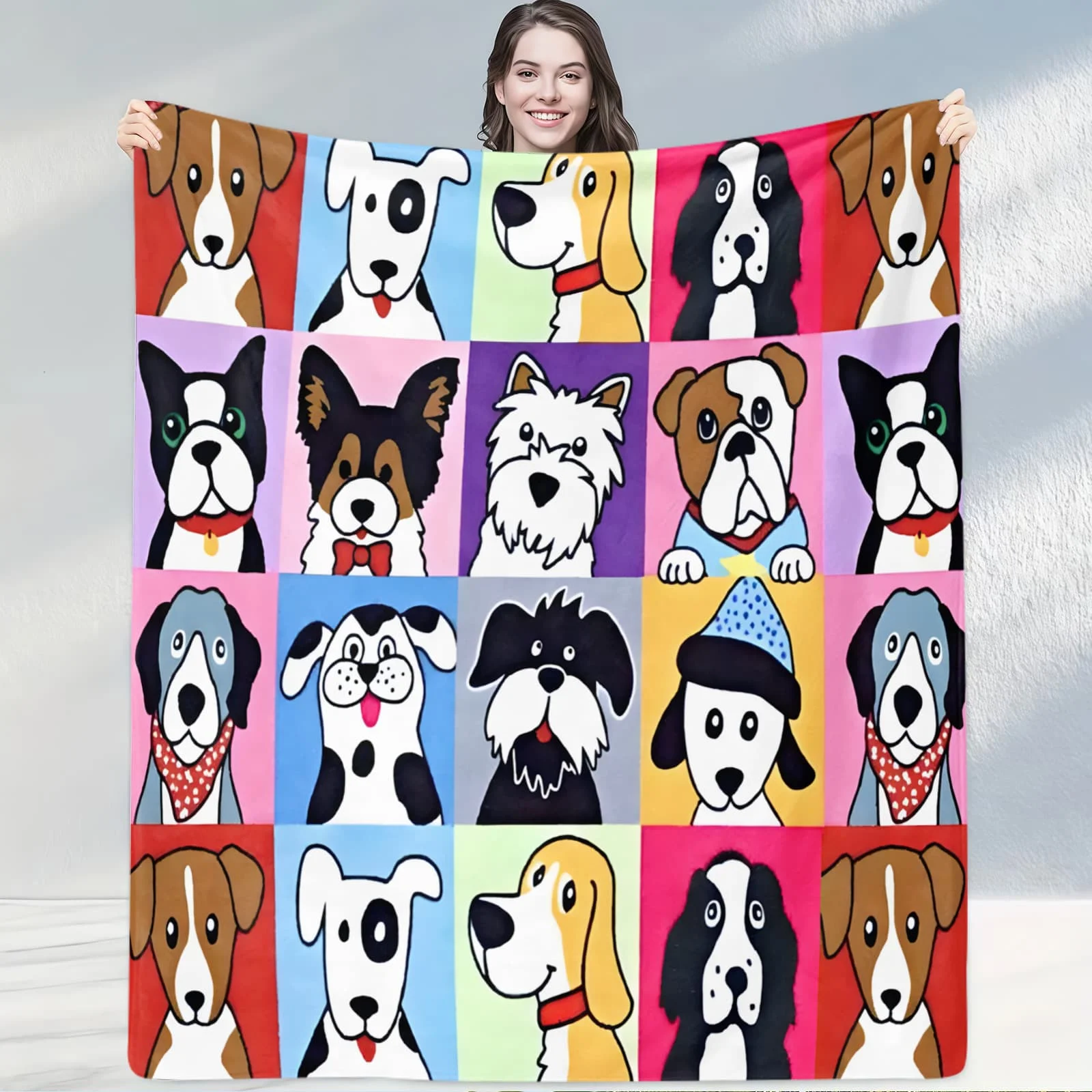 Pestrý roztomilá pes koláž flanel blanket: měkké útulné ložní prádlo pro bedrooms&lounges, ideální pro pes lovers&home komfort enthusiasts