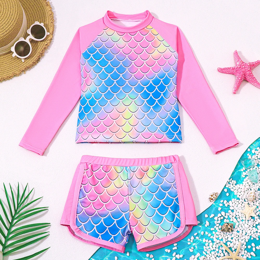 Dívčí dva kusu swimsuits sada mořská panna koupací oblek dlouhé rukáv plavek tankini havajská pláž sport plavání kostým