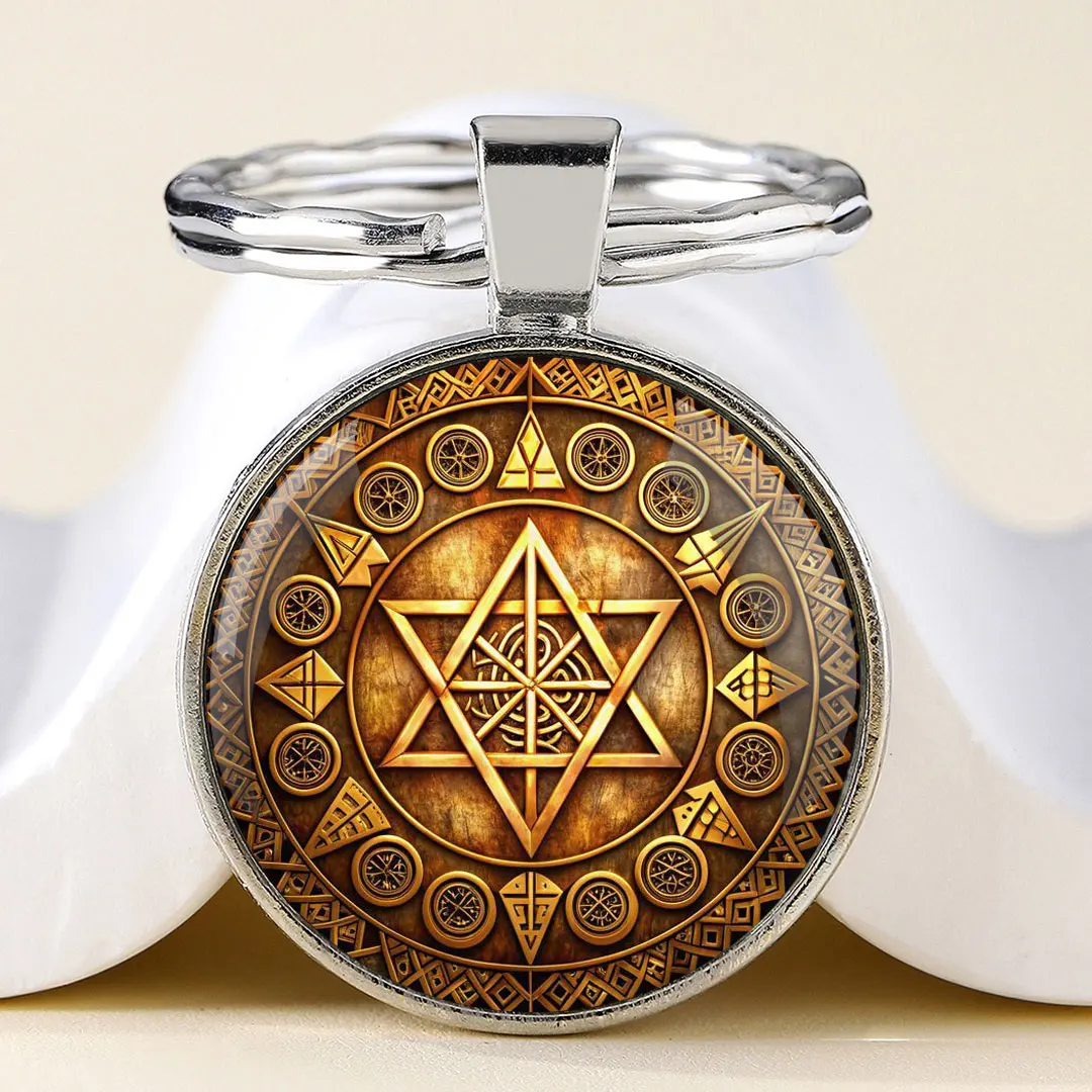 Magický symbolem hvězda slovanský pictograms sklo báň klíč běžící pás pro muži ženy klíč prsten dar klíčenka pro batohy auto klíč llaveros