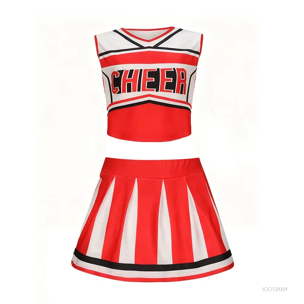 Děvče roztleskávačka kostýmy cheerleading šaty uniforma s krátkými rukávy nejvyšší sukně záruka studenti areálu tančit představení cosplais oblek