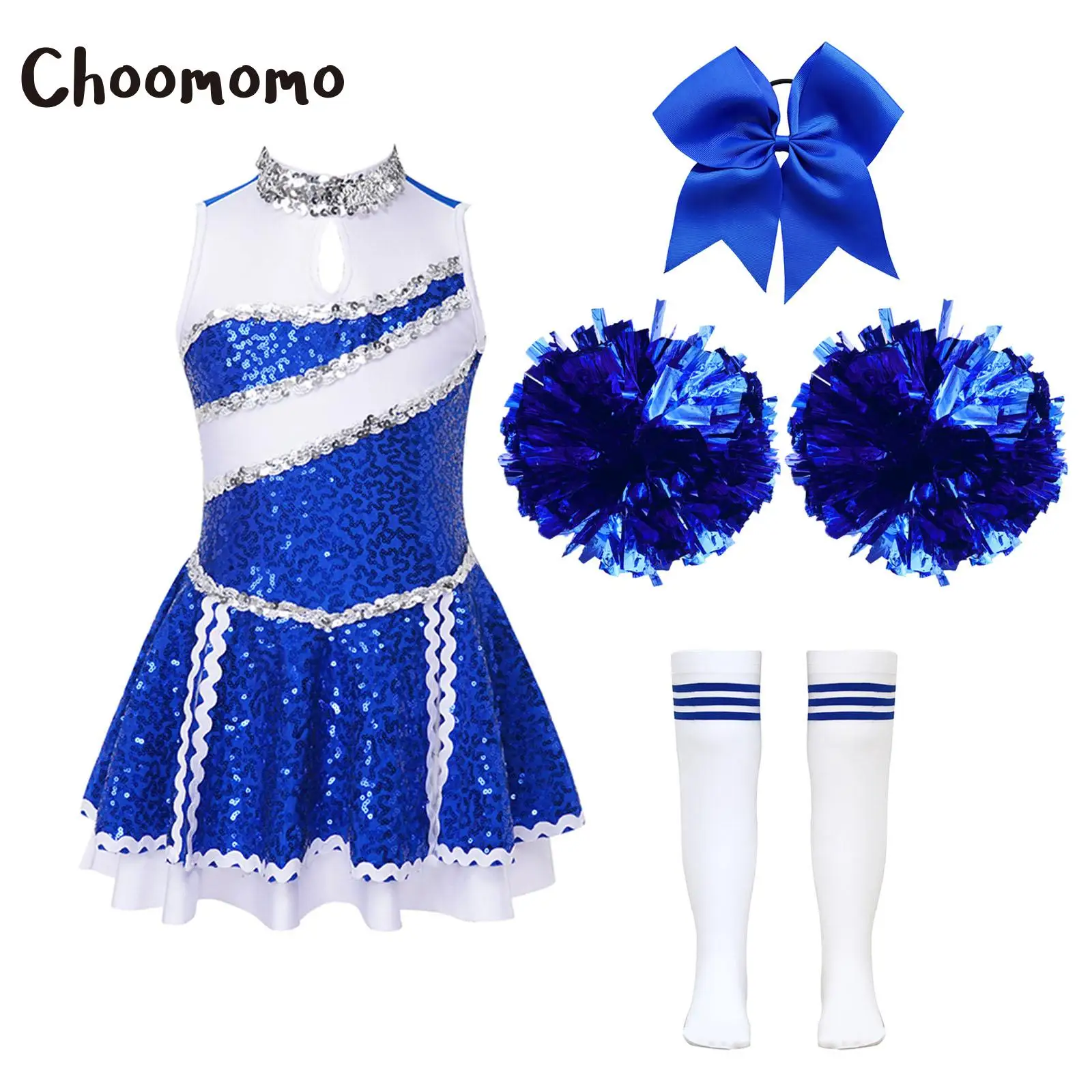 Dívčí cheerleading kostýmy flitr roztleskávačka tančit šaty s headwear ruka květin ponožky sada halloween jásot uniforma šaty nahoře