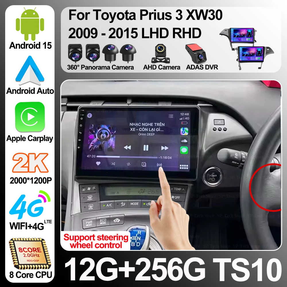 10" Android 15 hráč pro Toyota prius 3čepel XW30 2009 - 2015 LHD RHD Carplay auto hlava jednotka rádio stereo multimediální GPS dotek obrazovka