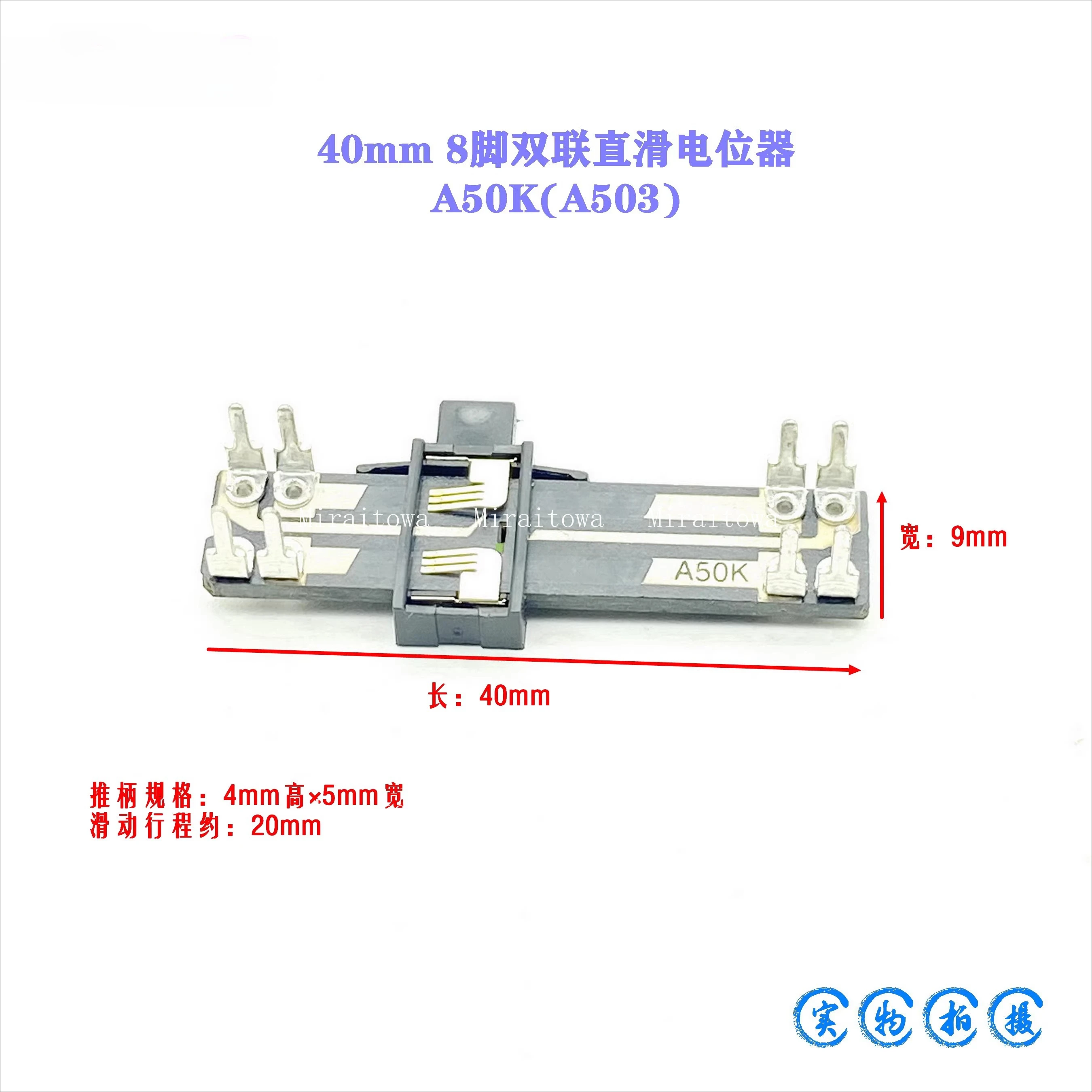 10ks 40mm A50K 6-pin vodorovný dual-channel direct-slide potenciometr energie zesilovač míchací konzole s rozseknout objem fadery