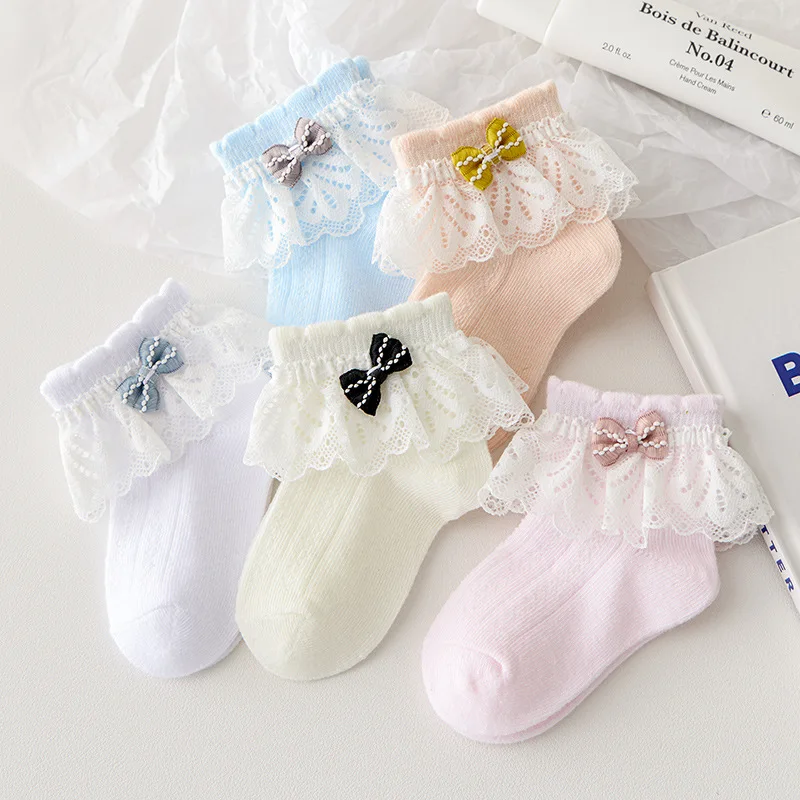 Novorozence děťátko krajka ponožky jaro léto hubený prodyšné pletivo ponožky pro dívčí 0-3yrs děti sladké mašle bavlna kněžna krátký ponožka