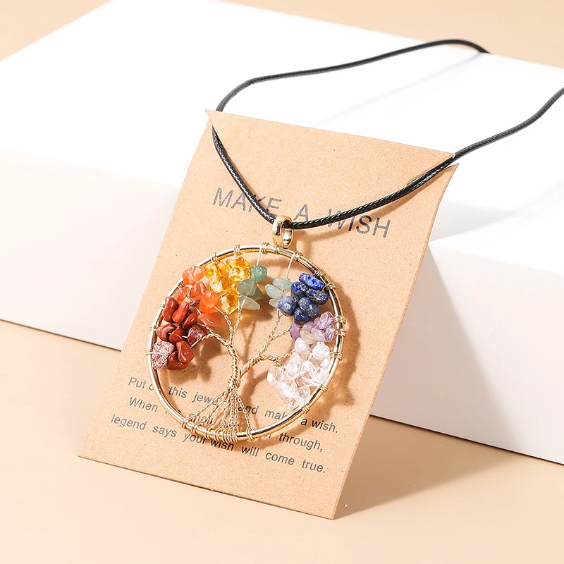 JD přírodní broušené sklo čipem 7 chakras strom z život přívěsek řetízek zlato barva moudrost reiki hojení energie šperků šťastný manželé dar