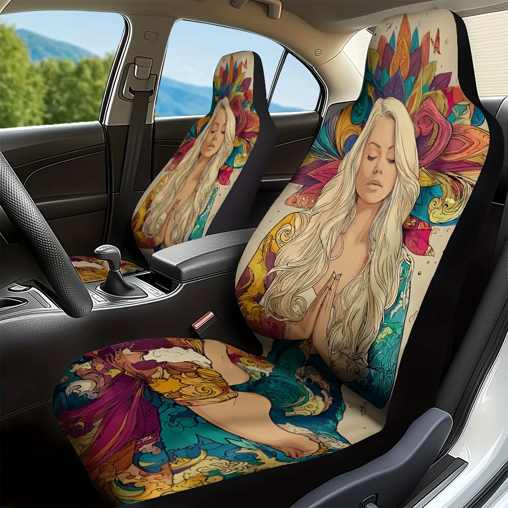 2ks meditace mandaly joga žena tisk auto Seat kryty, univerzální odpovídat, omyvatelné přední Seat kryty, auto vnitřní dekorace střídavého