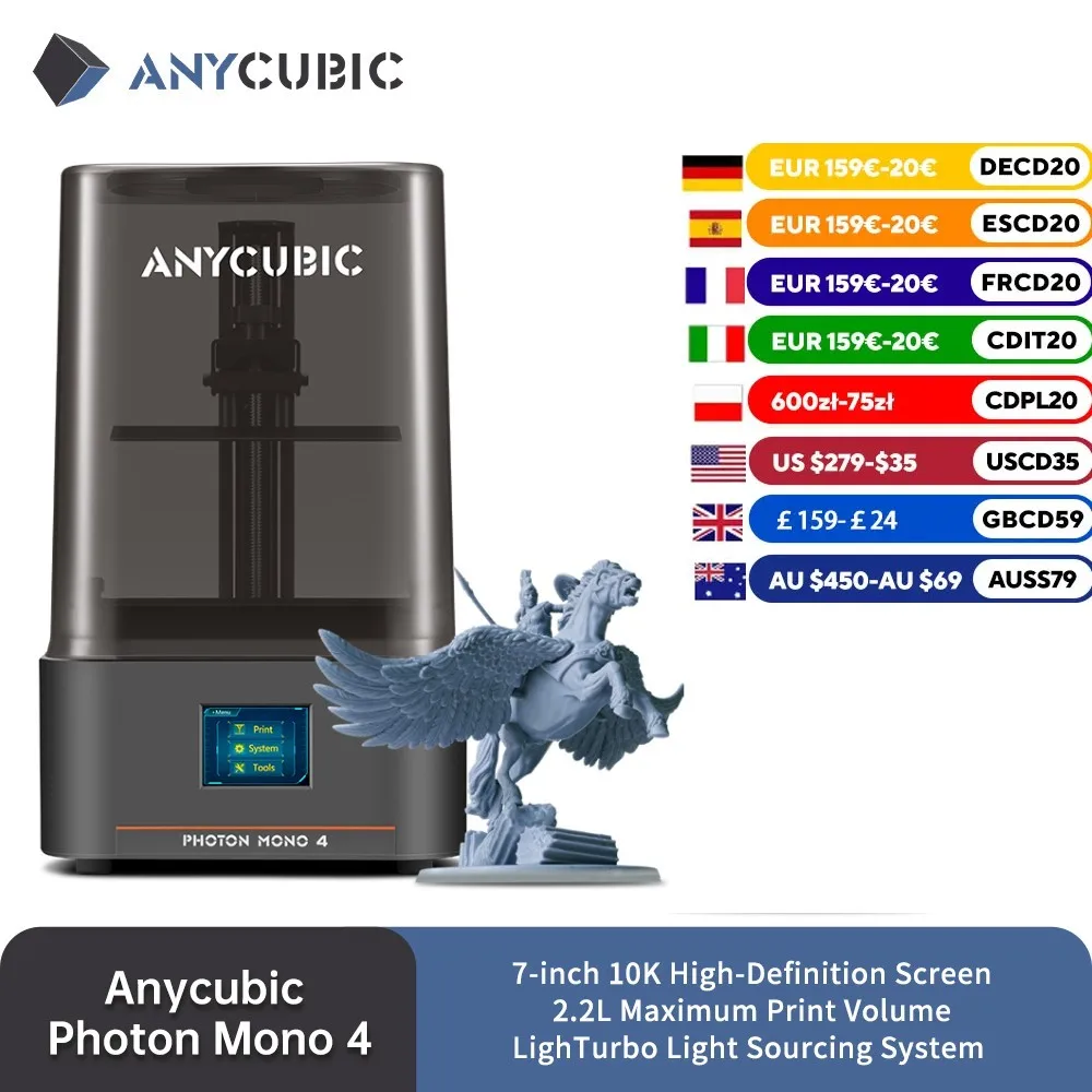 ANYCUBIC foton monokrystalických 4 AE varianta LCD UV pryskyřice 3D tiskárna vysokorychlostní 3D tisk 7" 10K high-definition obrazovka 153×87×165mm