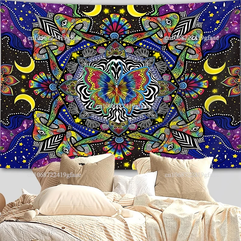 Houba oko motýl zeď závěsný tapiserie estetická bohémský mandaly květin tapestrys astrologie gobelíny pozadí hadříky