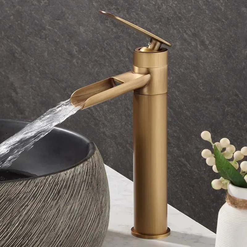 Antický bronz koupelna mosaz bazén s horké & chladný koupelna bortit se vodopád lavotory směšovače voda ťuknout
