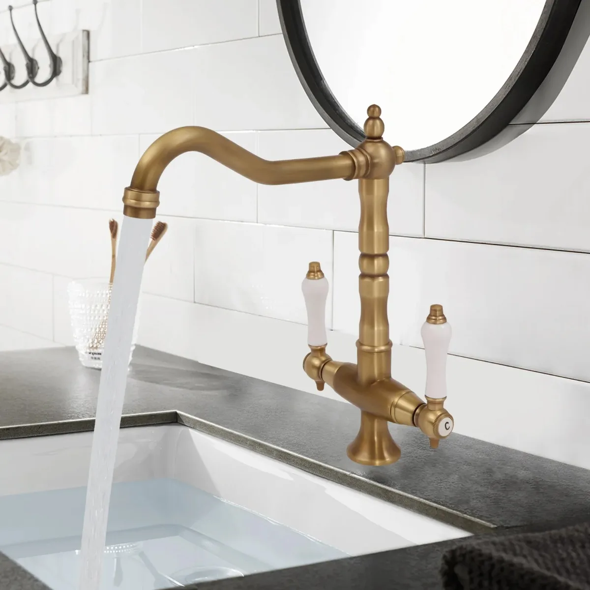Antický mosaz keramika madlo bazén pípa antický rotatble koupelna pípa kuchyň pípa horké chladný směšovače vztyčit kuchyň pípa