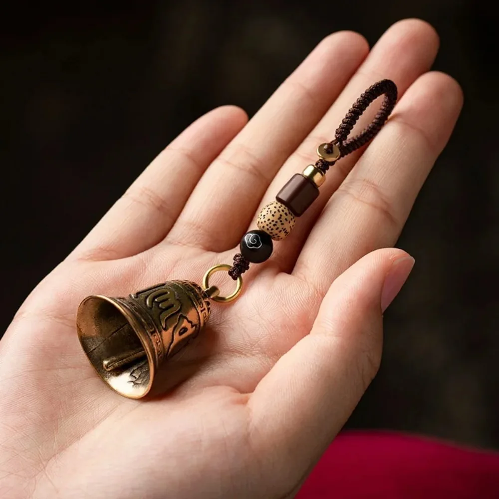 1ks vintage mosaz tibetské buddhismus six-word mantry zvon keychains šňůrka na krk přívěsky ruční lano auto klíč běžící pás kroužky závěsný