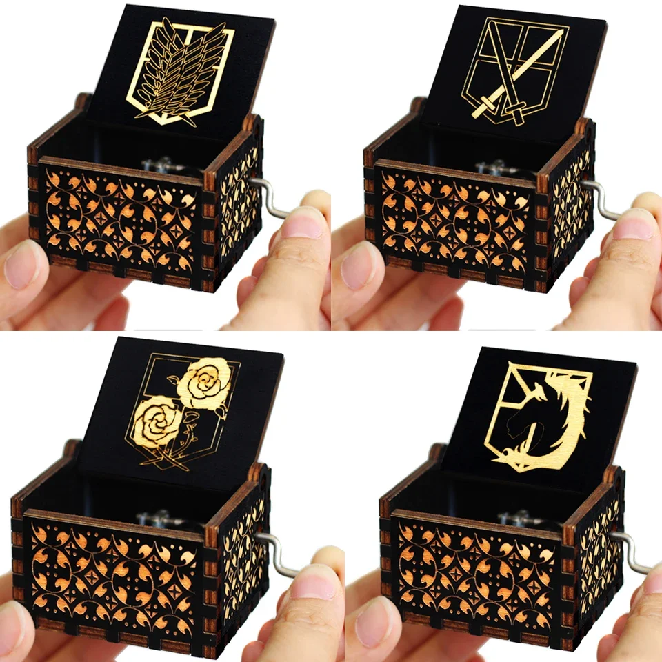 Horké !!!antique vyřezávaný dřevěný ruka kliková napadnout na titáni hudba skříňka figura vánoce narozeniny dar