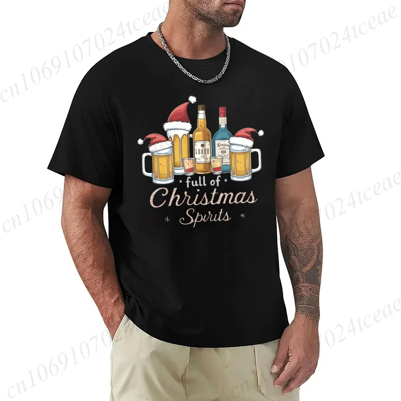 Plný z vánoce bedlivost pivo grafické T košile muži léto krátký rukáv tees alhokol svátek večírek móda pouliční oblečení tričko topy