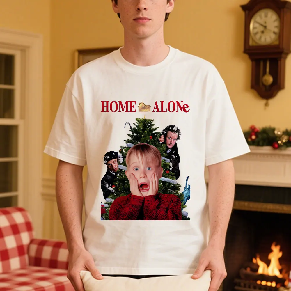 Vintage klasický legrační domácí číslo jednotné macaulay culkin film potištěné tričko žena muž veselé vánoce bavlna s krátkými rukávy tričko