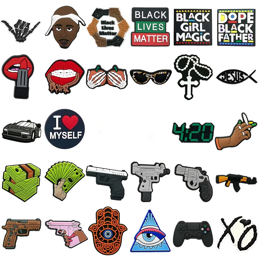 1/30pcs trendy kapuce styl bota okouzluje hiphop pěvec hra regulátor dolar pistole muži chlapci bota příslušenství kolíků dřeváky dekorace