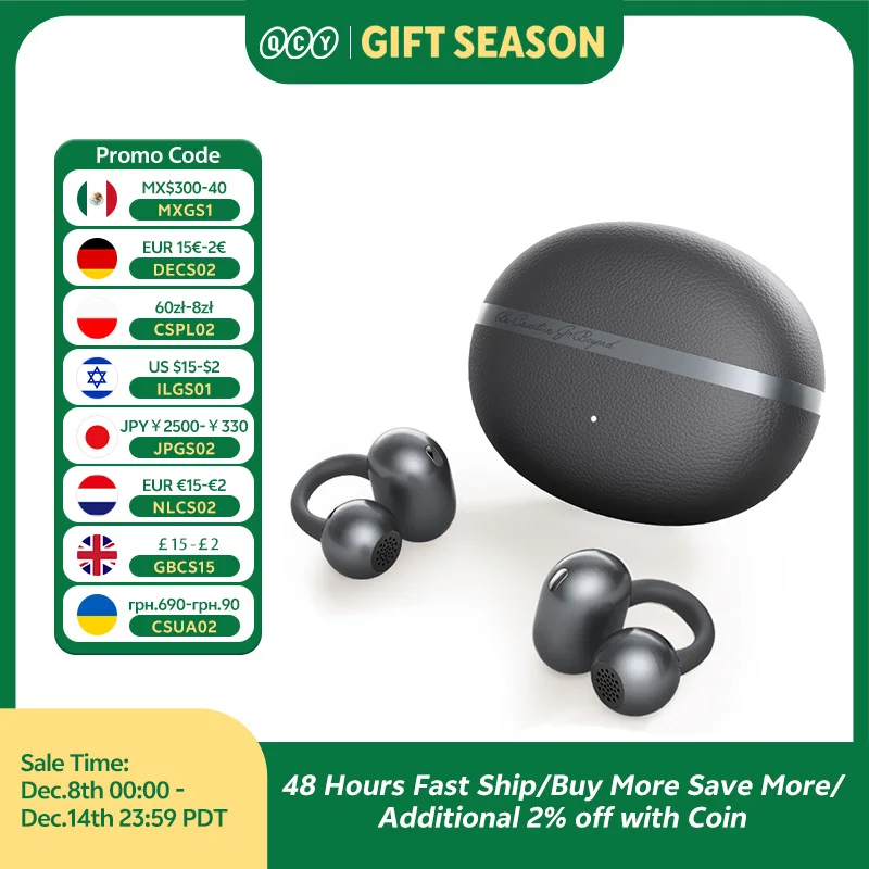 Qcy crossky C50 otevřený ucho bezdrátový špunty Bluetooth 6.0 komfort klip na sportovní sluchátko 4 mikrofon AI průhledný volat bas plnicího sluchátka