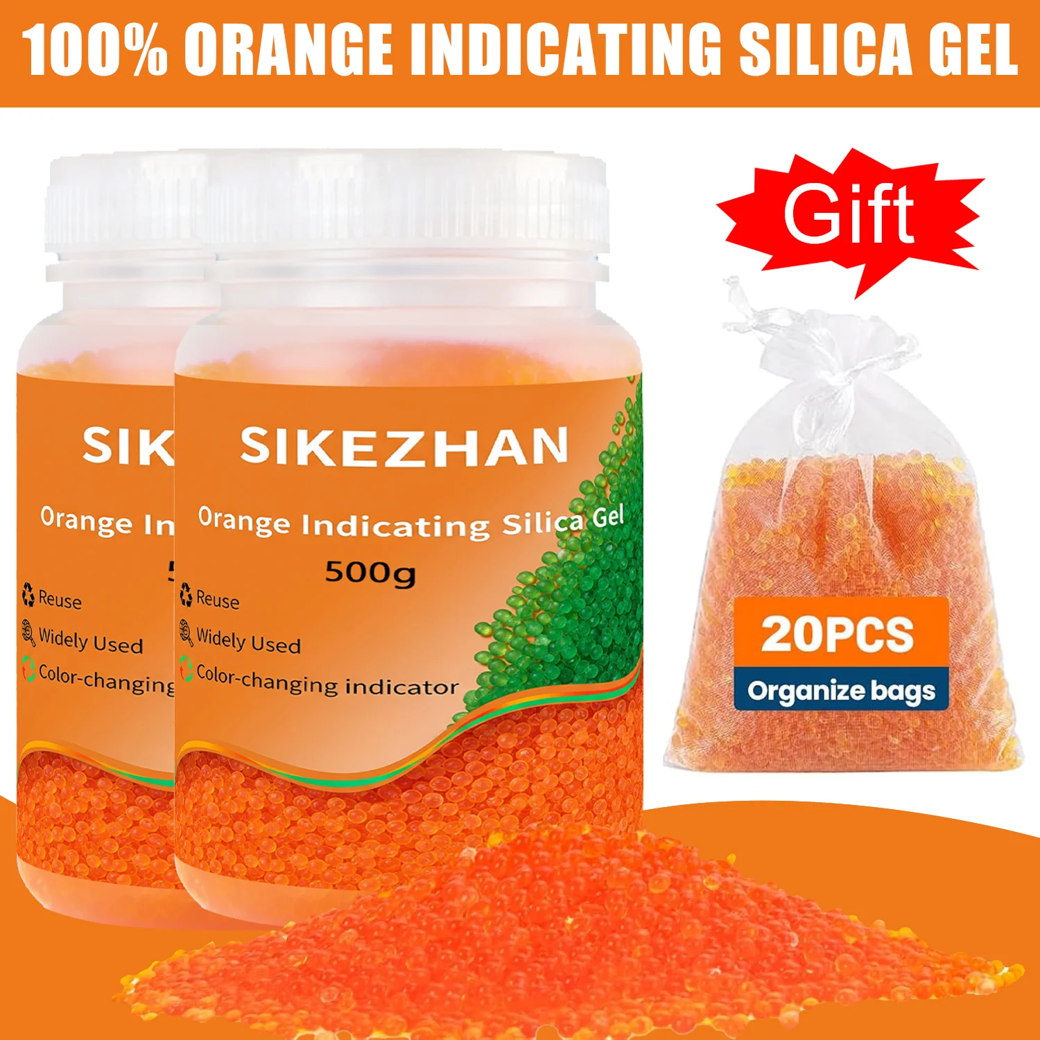 Označující silica gel vysoušecí 1000g blue/orange znovu použitelný vláha absorbér korále s 20ks malý pytle pro úložný kontejnery