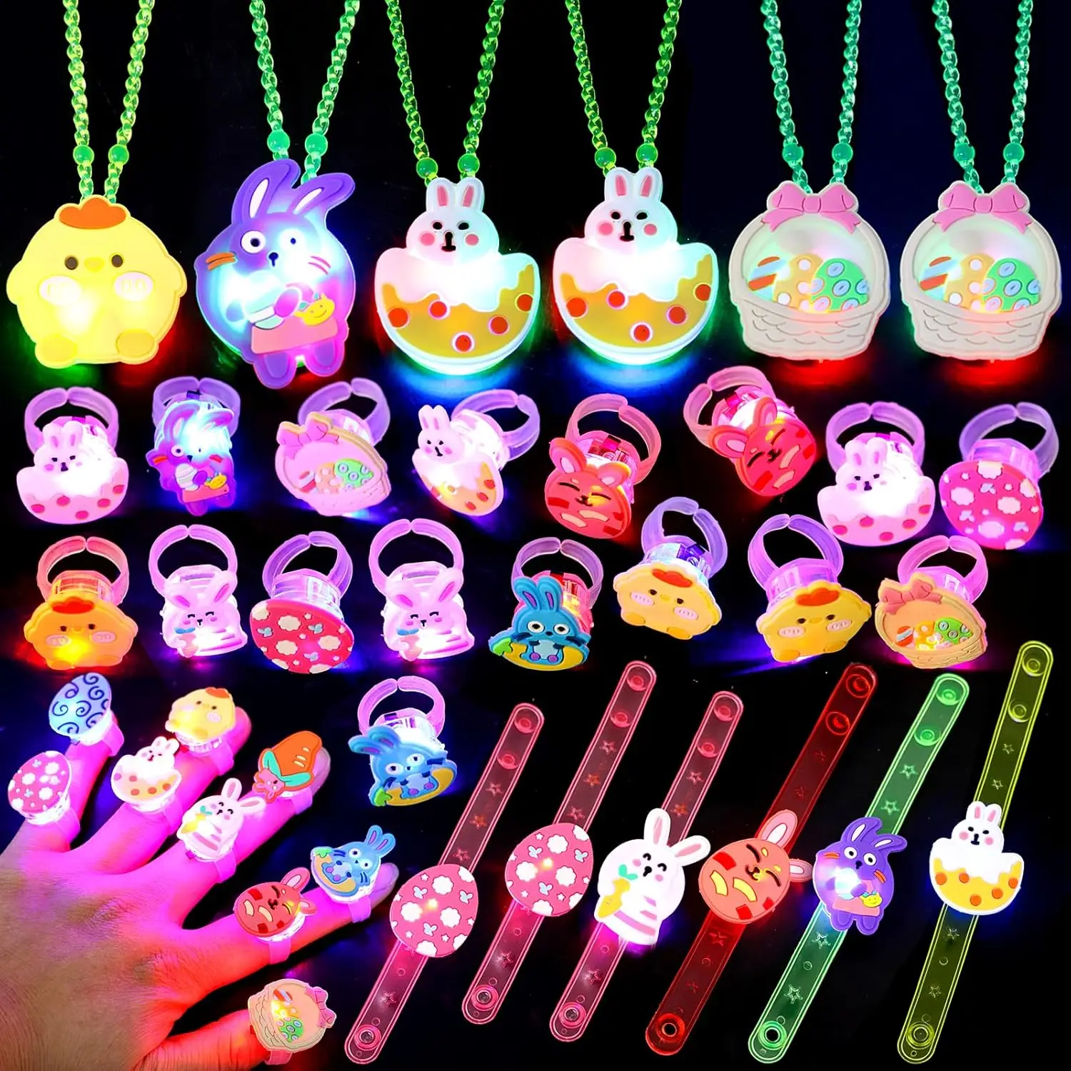 Velikonoce LED lehký nahoře prsten náhrdelníky náramky velikonoce večírek laskavosti z koš stuffers vejce plniva záře v temný večírek zásoby