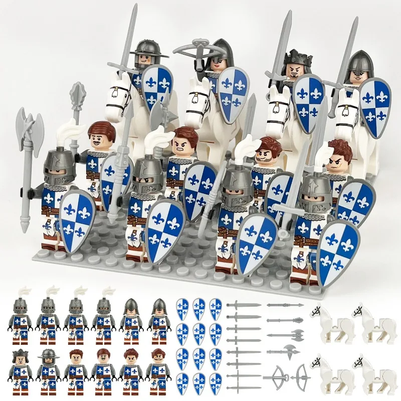 Středověký rytíři armádní sbor středověký vojáci zbraně bílá kůň příslušenství malý dětské budova bloků hraček. kamarad dar