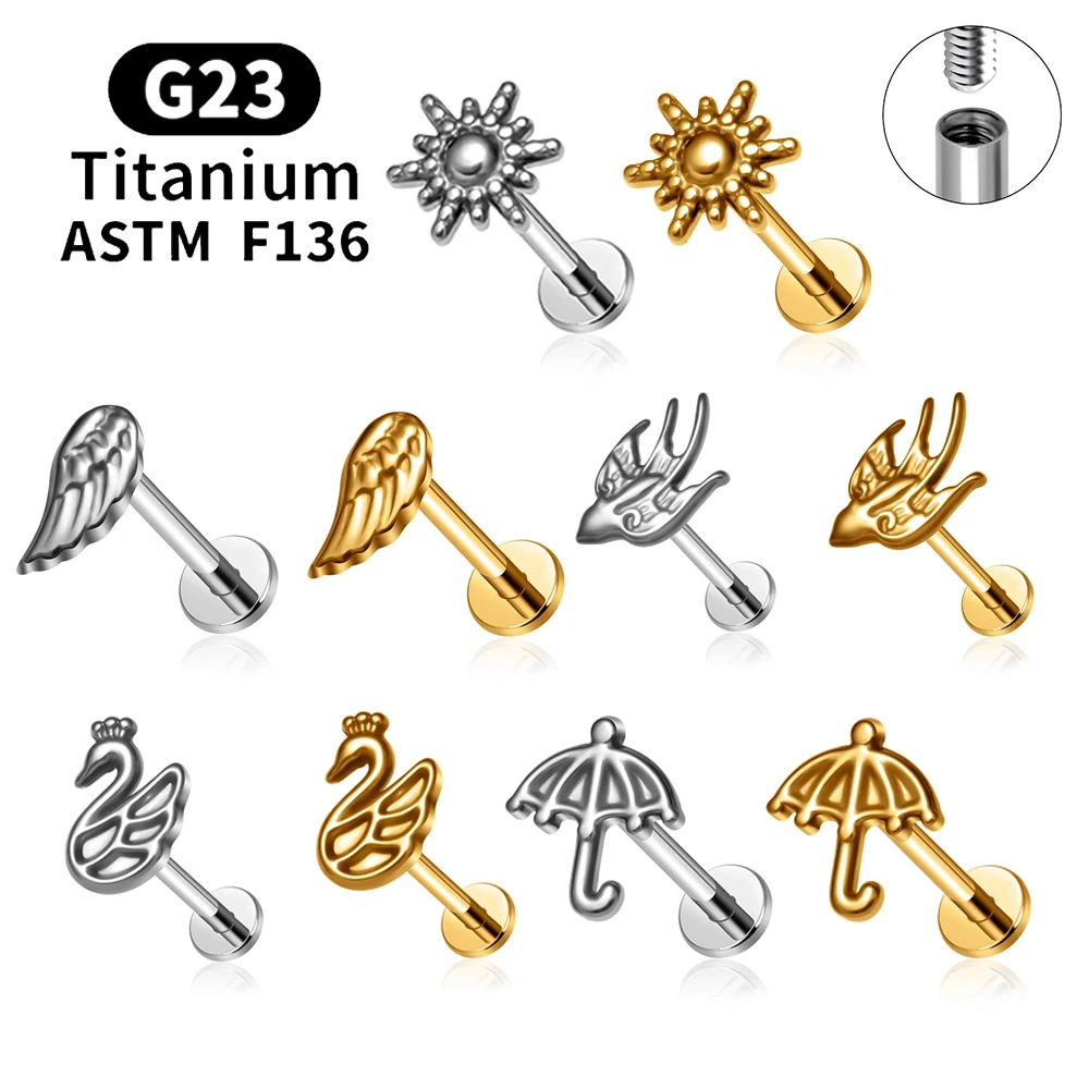 ASTM F136 titanová blatník plochý zpět náušnice hřeby 16G slunce labret lippe skoba ucho nos chrupavka bodloplev ulita lodní šroub piercing šperků