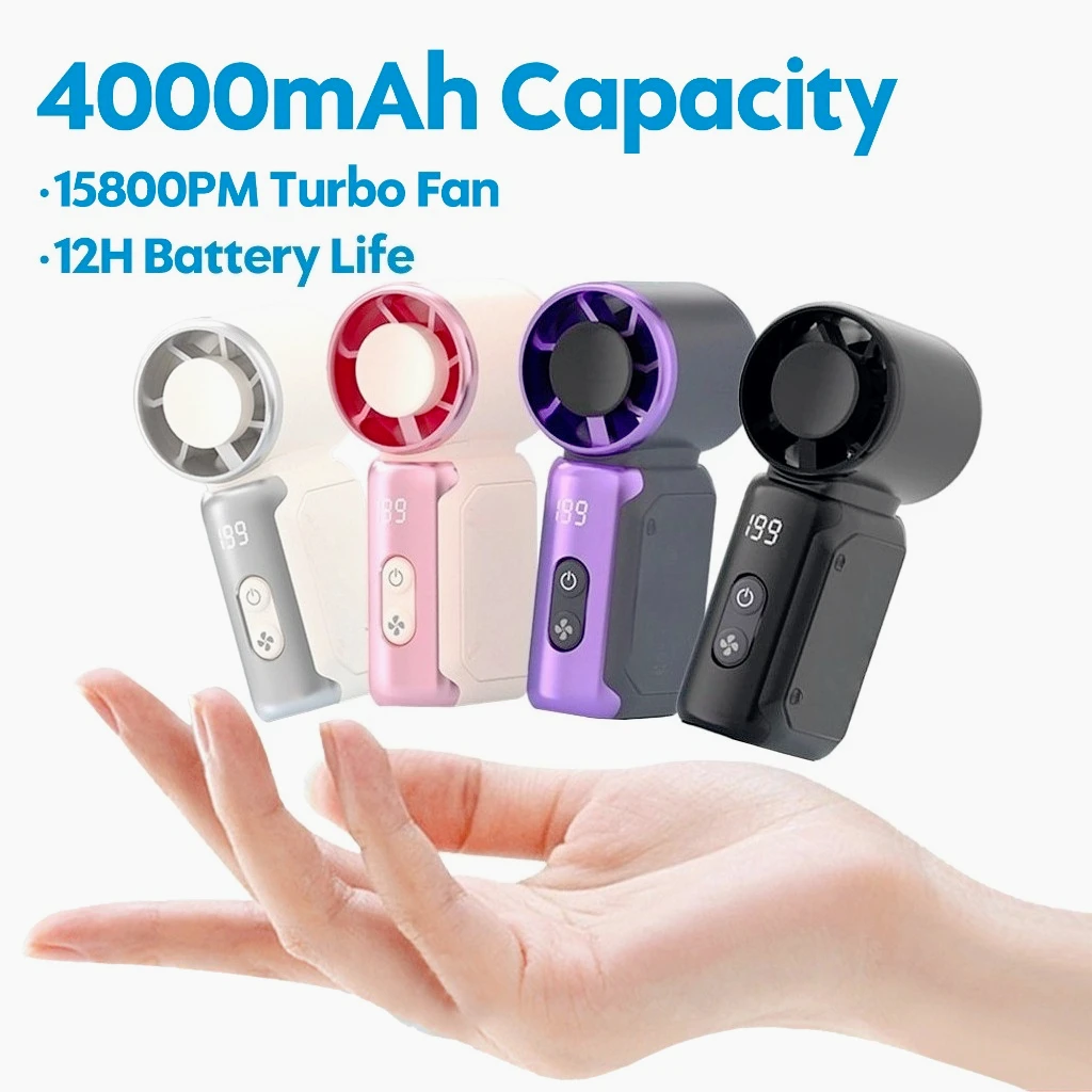 Mini přenosné kapesní turbo fanoušek 3600mah LED displej mini vysoký rychlost kapesní fanoušek, outdoorové chladící, psací stůl fanoušek, dobíjecí fanoušek