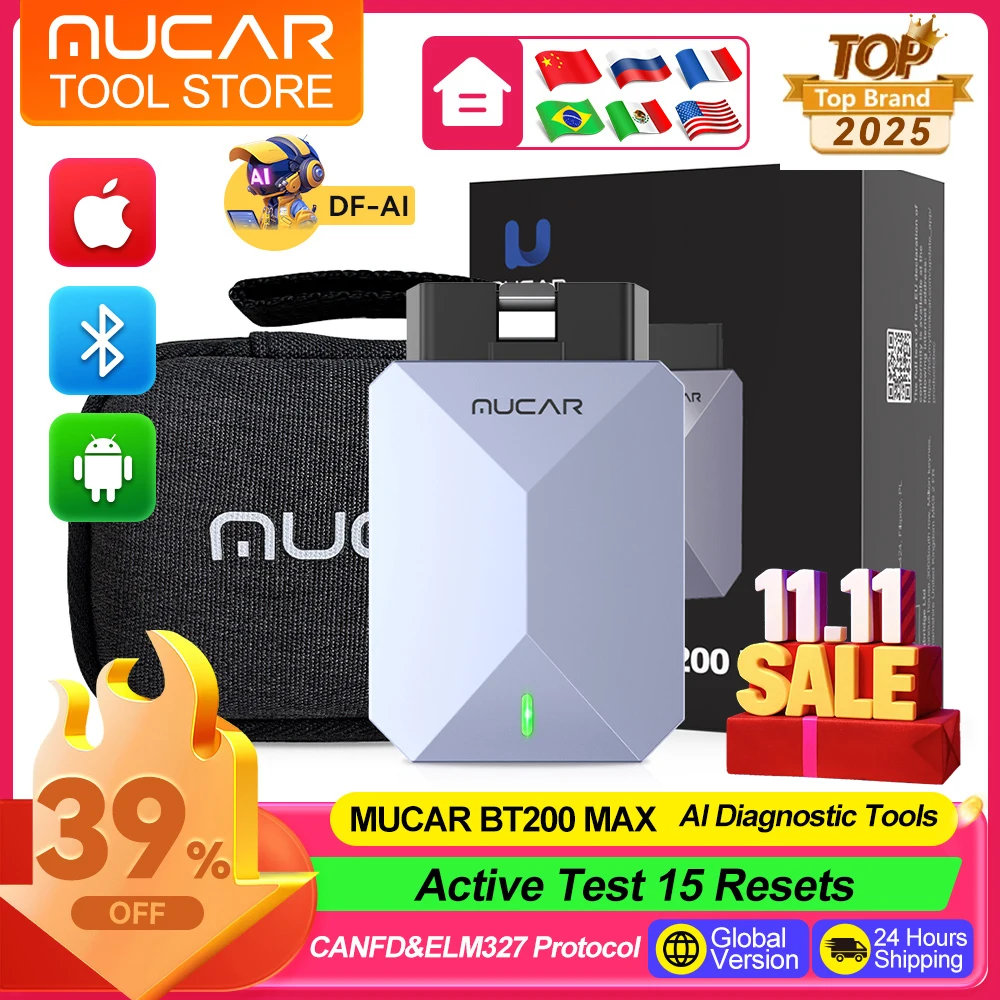 MUCAR BT200 maxi obd2 skener podpora ELM327 CANFD protokol plný systém diagnostické nástroje 15 resetovat doživotní volný aktualizovat skenování nářadí