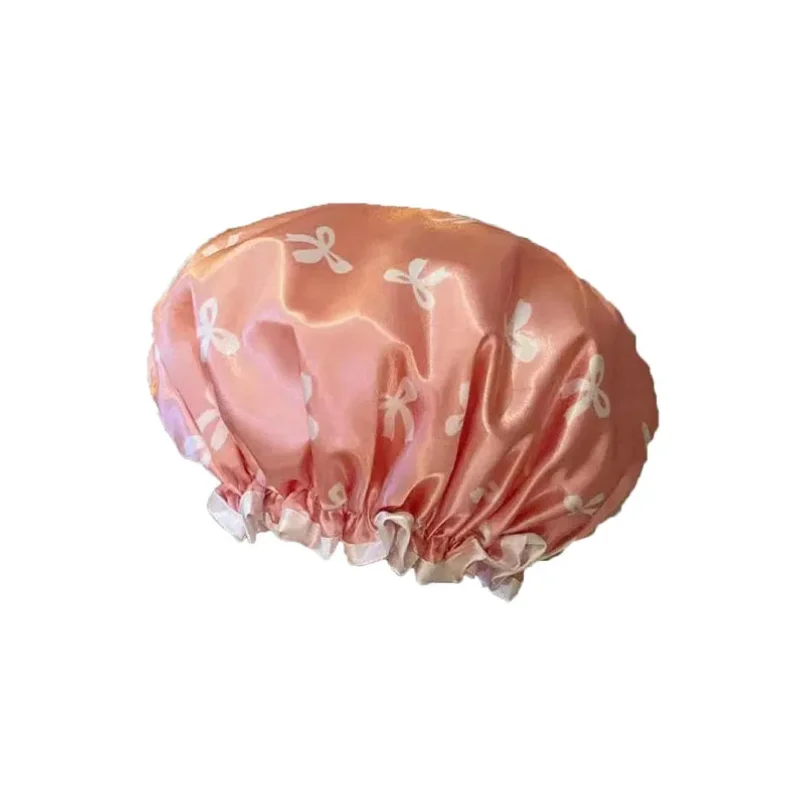Roztomilá vodotěsný dvojitý vrstva sprcha čepice nešpinivé elegantní luk střih design koupat čepice zahuštěný znovu použitelný vlasy čepice ženy