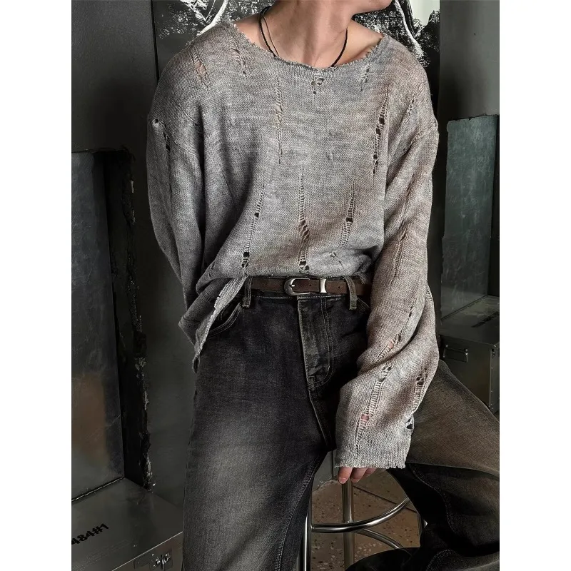 Hollowed-out s dlouhým rukávem pletené svetr pánské lehký luxusní ležérní líný vítr jaro a podzim tričko