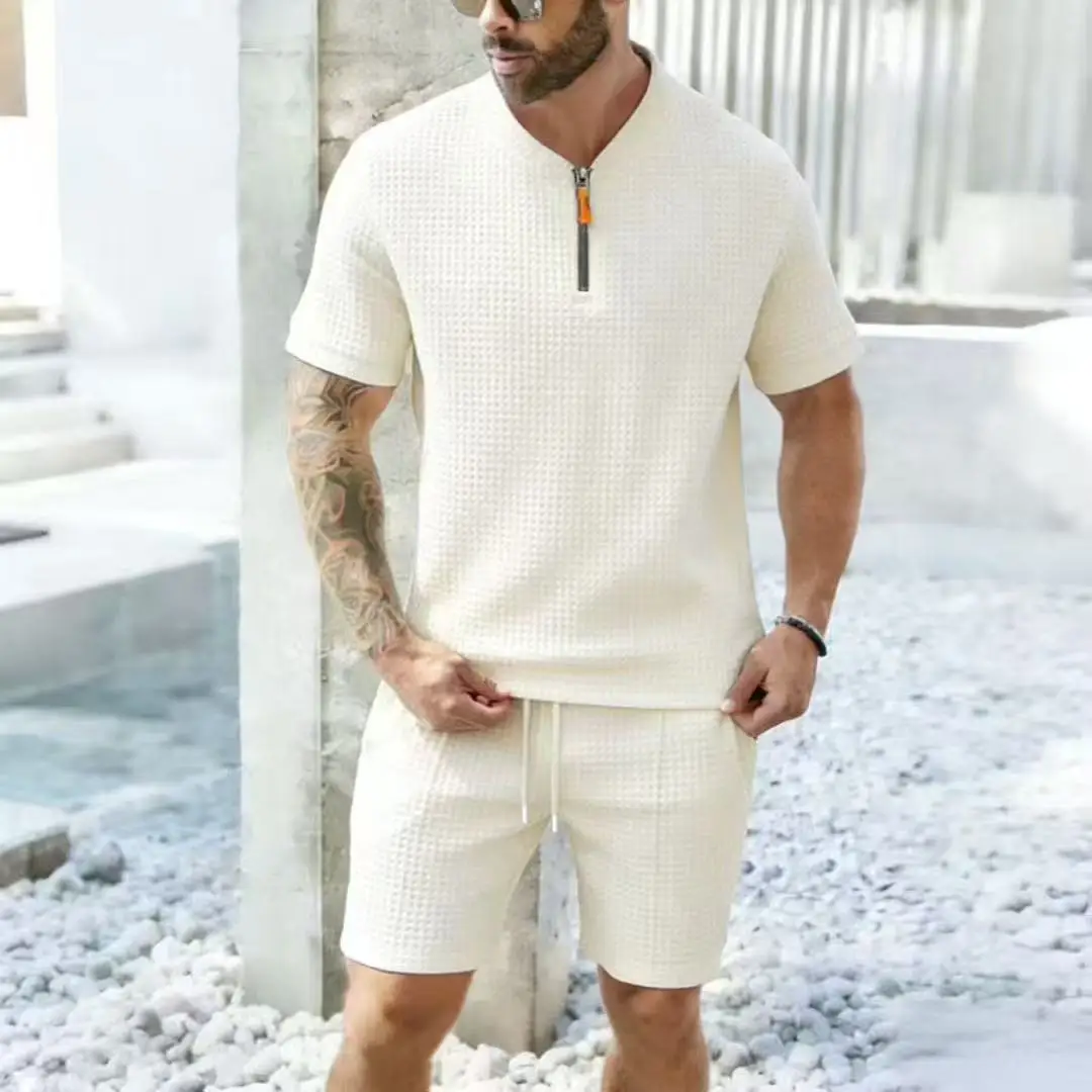 2026 nový léto plain-colored oplatek blůza a šortky sada s na zip uzávěry + šortky - dvoudílná sada