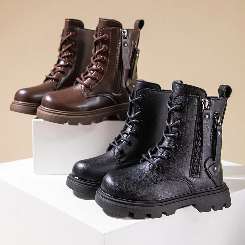 Klasický dívčí platforma boty jaro podzim móda děti kauzální kůže boty versatile protiskluzový černá hnědá děti kotník boty