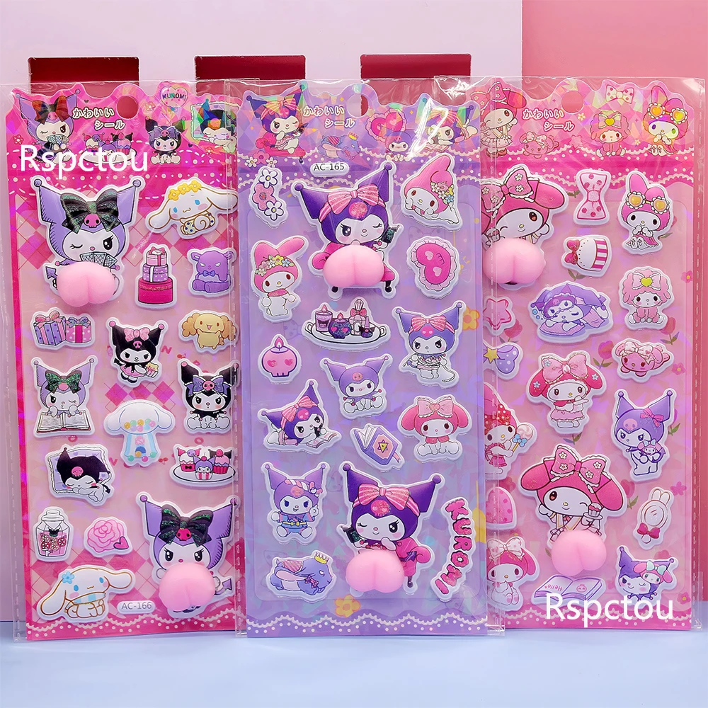 4ks kreativní sanrio št'astný hýždě nálepky měkké pinchable dekomprese 3D bublina nálepka notebook telefon brašnářské obtisky balení
