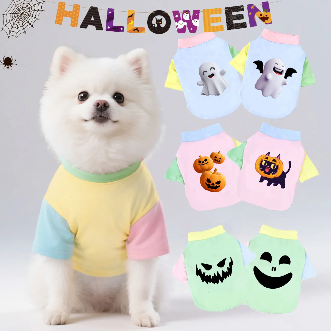 1 PC halloween zvířátko tričko, kocour & pes dopamin barva nákres oblečení , legrační tykev děsivé lebka pes halloween kostýmy