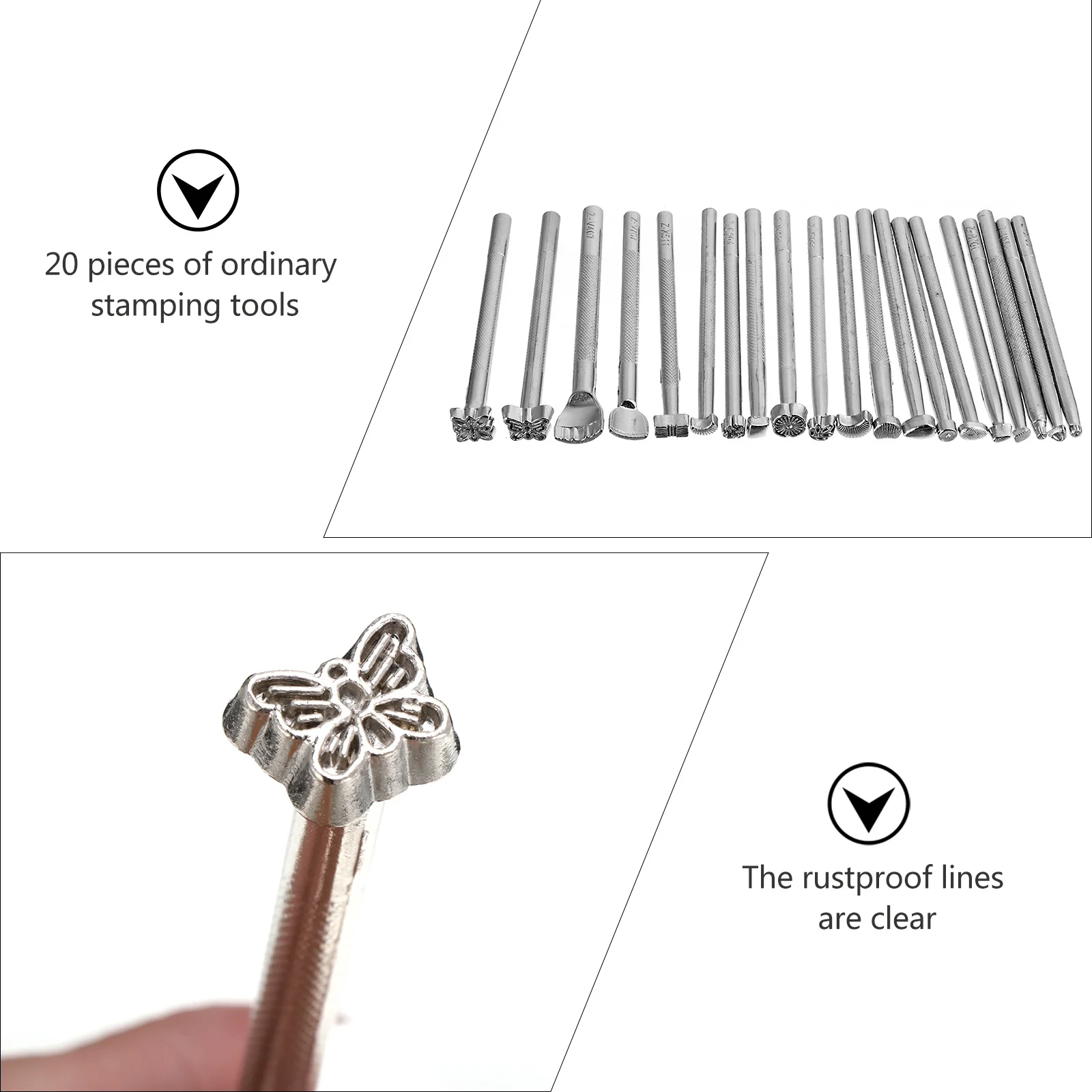 20ks řemeslo cejchování nástroje sada nerez ocel DIY gravírování řezbářský tisk forma zásoby pro začátečníci profesionály