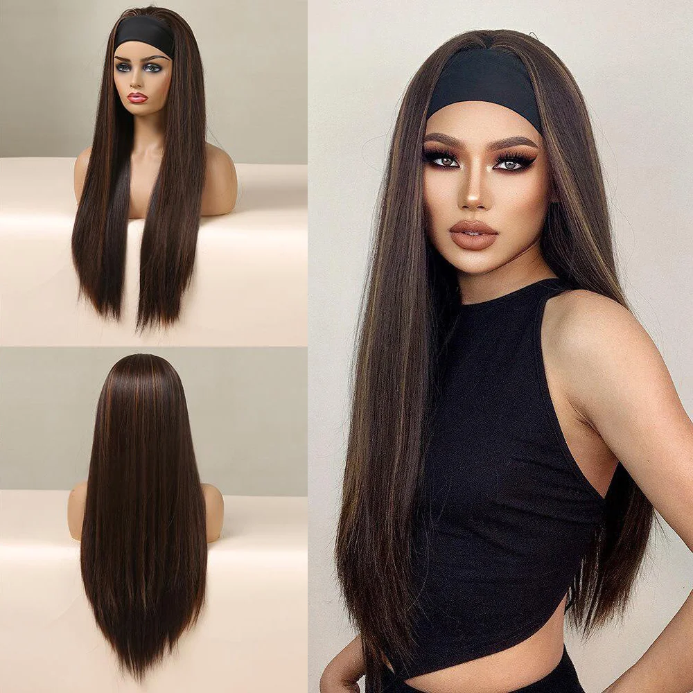 Nový 24-inch čelenka paruka syntetická curly/long přímo paruka vhodný pro dámská denně večírek načechraný a tepelně odolný paruka