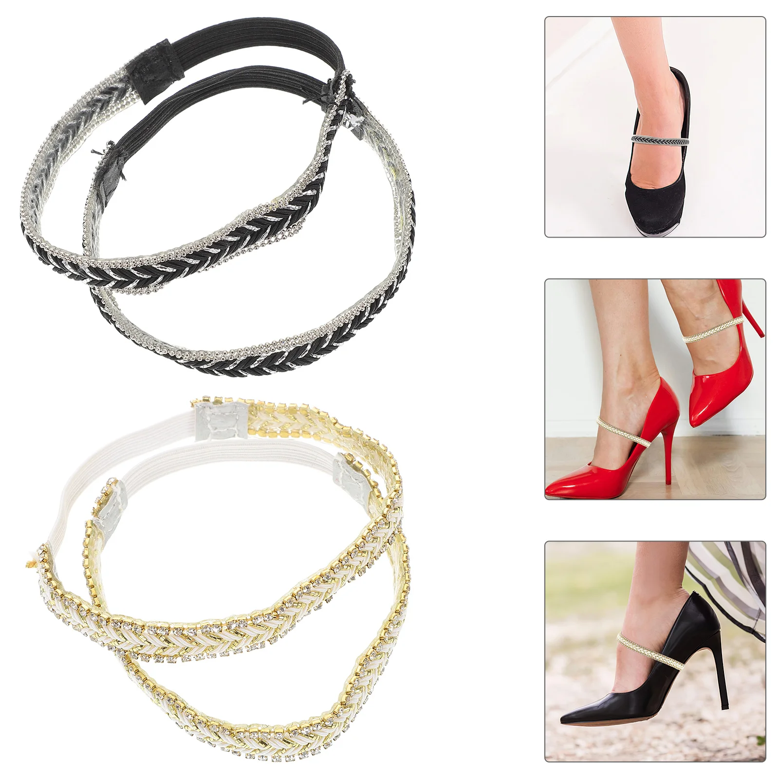 2pairs anti emf kolíček elastická pata kapel vysoký pata bota popruhy sparkly kamínky nahraditelné vhodné bota popruhy pro ženy