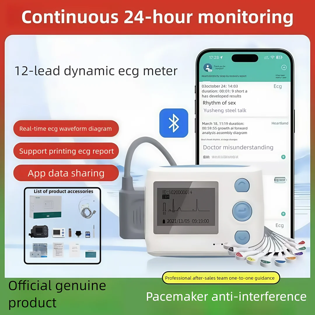 Bluetooth ekg rekordér 12 dovést dynamické ekg průběhový 24-hour srdce hodnotit monitoring vysoký konec ekg monitor datový úložný výhled repor