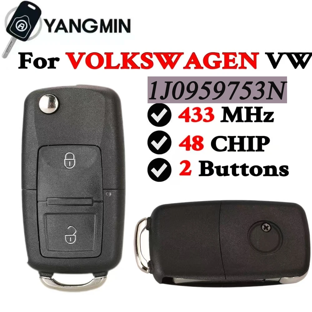 YANGMIN 1J0959753N převrátit daleký auto klíč fob pro VW 2BTN Bora golf polo Passat Touran Seat skoda 434mhz id48 čipem Volkswagen klíč