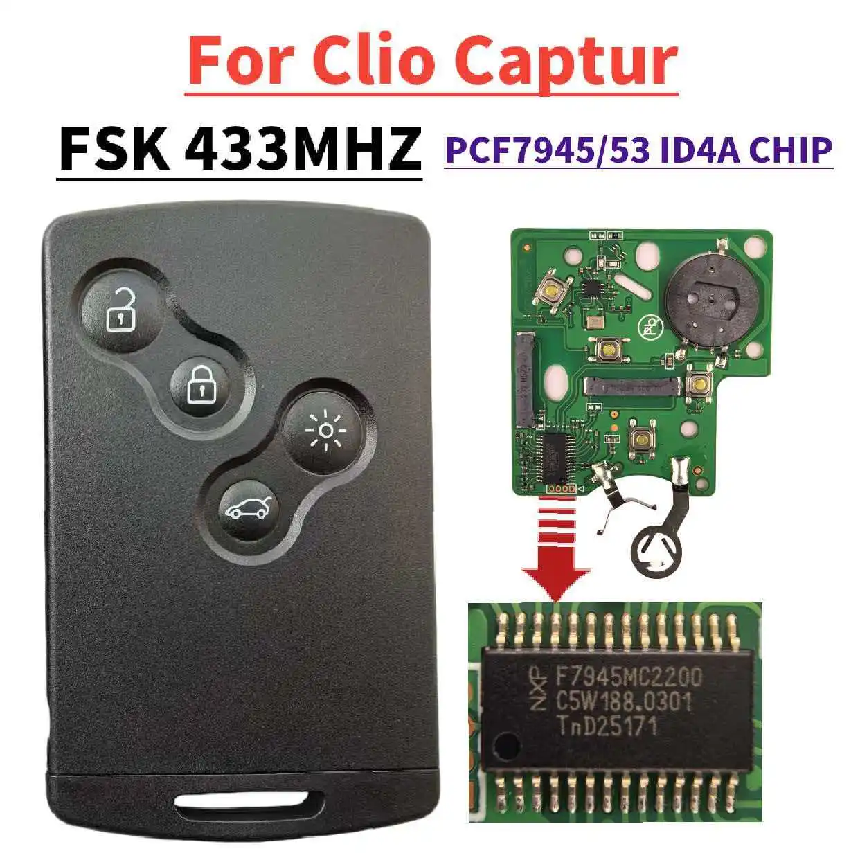 Jingxin bezklíčové daleký auto klíč PCB (desky plošných spojů) deska lastura pro renault koleos clio4 captur chytrý karta ID4A pcf7945/53chip 433mhz s logem