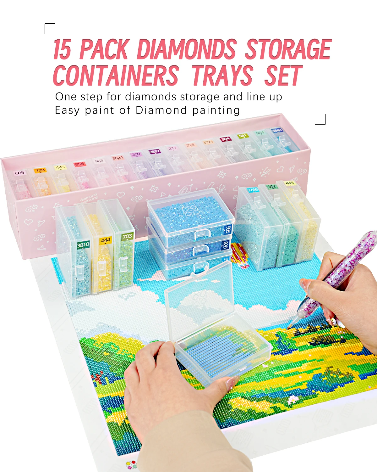 Diamant malba příslušenství diamant malba podnosy s lids, 15ks diamant malba úložný kontejnery trays,box balíček