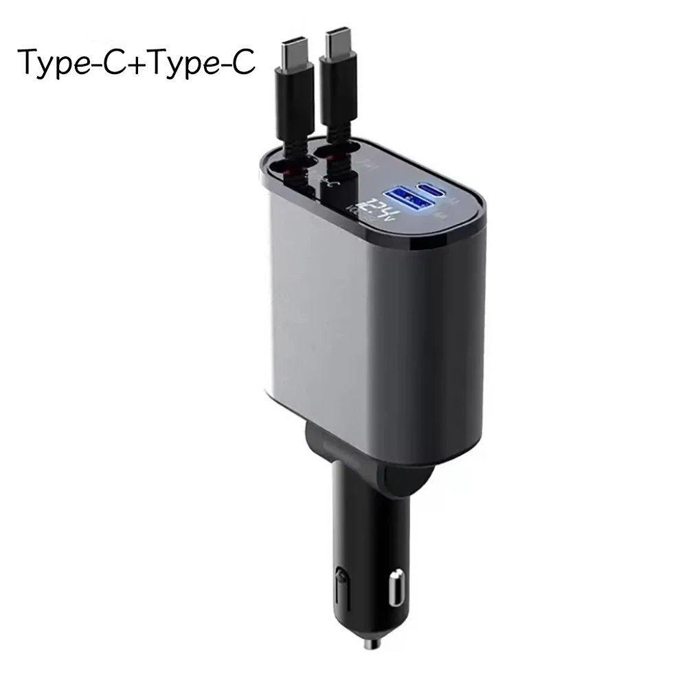 120w 4 v 1 zatažitelný auto nabíječka adaptér s zatažitelný kabelů elektrické napětí displej USB/USB-C porty aluminium slitina