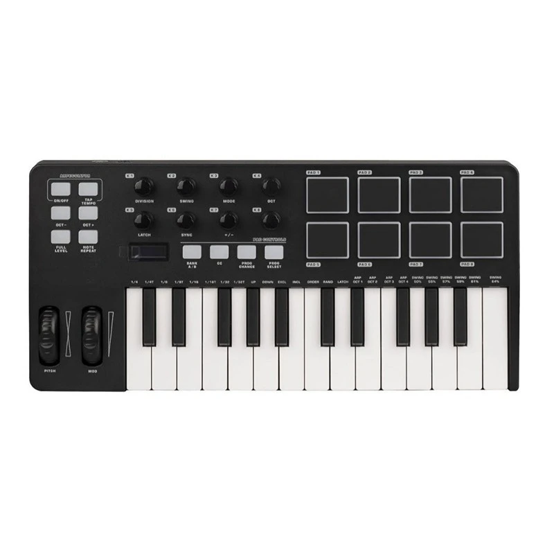 M-VAVE 25-key MIDI ovládání klávesnice mini přenosné USB MIDI regulátor s 25 rychlost citlivý kláves 8 RGB podsvícená vycpávky 8